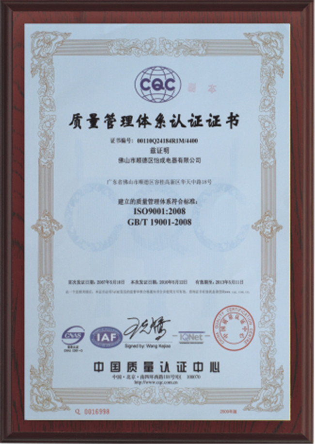 企業(yè)通過(guò)IS09001:2000國(guó)際體系認(rèn)證,并全面嚴(yán)格按照IS09001:2000體系進(jìn)行運(yùn)營(yíng)管理。企業(yè)是中國(guó)土木工程學(xué)會(huì)燃?xì)夥謺?huì)會(huì)員單位、廣東家電商會(huì)會(huì)員單位、順德燃?xì)饩呱虝?huì)會(huì)員單位、順德家電商會(huì)會(huì)員單位,公司是國(guó)家出口產(chǎn)品二類企業(yè),公司主要產(chǎn)品出口北美和歐洲地區(qū),公司一貫堅(jiān)持質(zhì)量、信譽(yù)至上...