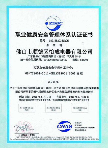 佛山市順德區(qū)怡成電器有限公司屬下有八部一室,三大車間,工程技術(shù)人員和管理人才100多人,一大批現(xiàn)代化五金生產(chǎn)設(shè)備,自動(dòng)噴涂生產(chǎn)線和功能齊全的現(xiàn)代化生產(chǎn)線,公司為做好壁掛爐產(chǎn)品,從一開(kāi)始就選用高、精、尖的生產(chǎn)設(shè)備和檢測(cè)設(shè)備和自動(dòng)翻版檢測(cè)設(shè)備。連續(xù)配氣系統(tǒng)設(shè)備,NOX綜合測(cè)試裝置,五合一全電腦綜合測(cè)試設(shè)備儀器,測(cè)試的準(zhǔn)確性、可靠性及耐久試驗(yàn)都在同行具有水平。
